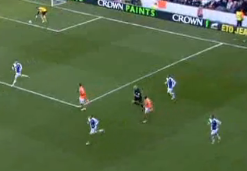 And from the resulting free kick, Blackburn knock the ball into the Blackpool goal to make it 2—2.